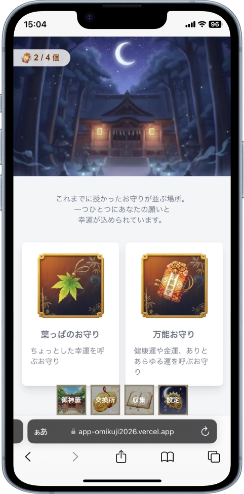 学習の応用として、初めて制作したNext.jsアプリが『おみくじアプリ2026』です。
